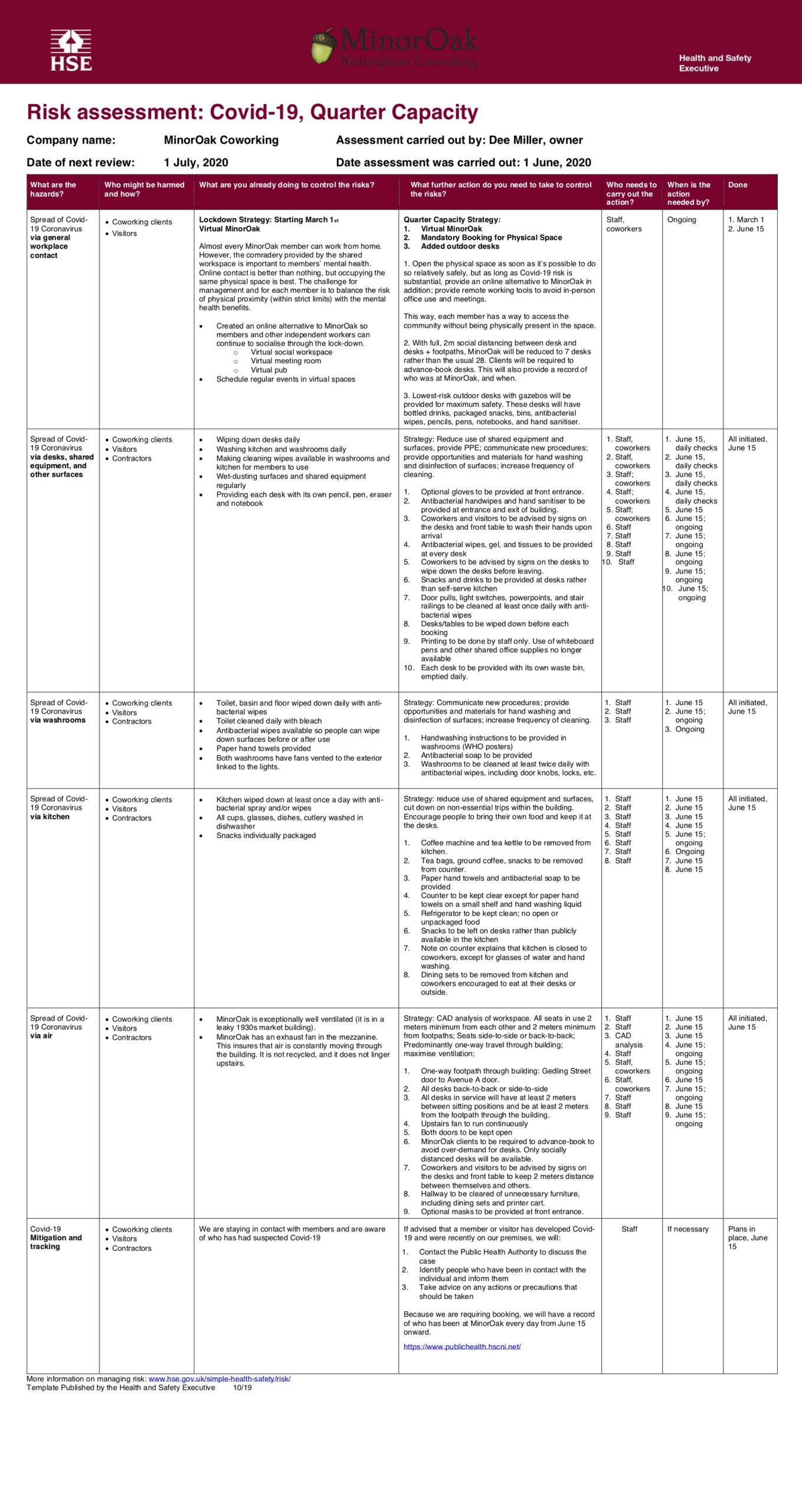 MinorOak Coronavirus risk assessment – 1 sheet for website