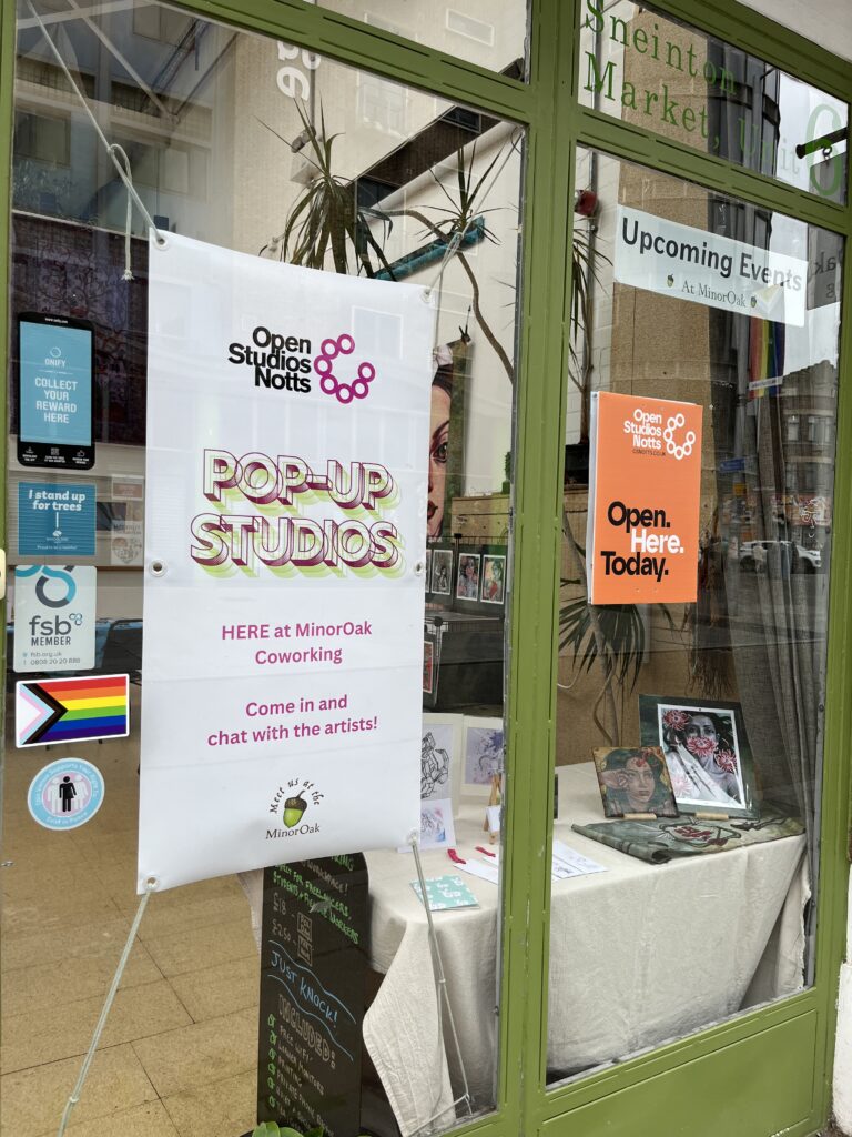 If you’re an artist who has been wanting to participate in Notts Open Studios, but your studio is not ideal for opening up to the public, we have a solution! We are opening up the downstairs front room in our lovely coworking space to artists on the first four weekends in May 2026 as an Open Studios venue. We will act as a group studio and we’ll be responsible for the Open Studios fees. If you submit your artists statement and photos by 19 January, you will be in the official booklet.